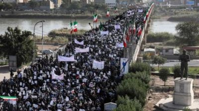 وفي مظاهرات يوم الجمعة ردد المتظاهرون هتافات ”الموت لأمريكا“ و”الموت لإسرائيل“ وحملوا صورا للزعيم الأعلى آية الله علي خامنئي ولوحوا بالأعلام الإيرانية.