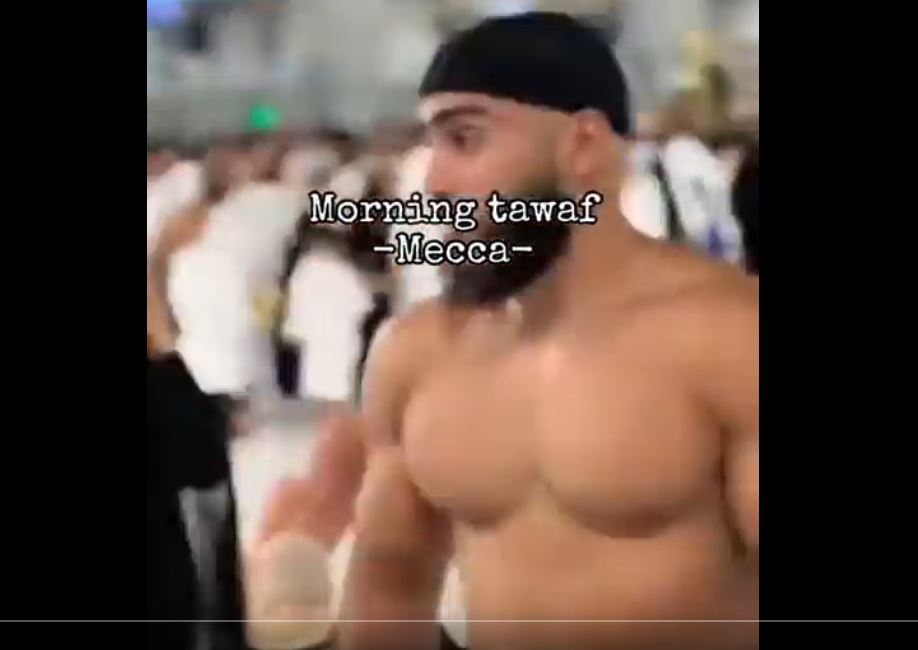 ولفت الانتباه مؤخرا احد مشاهير مواقع التواصل الاجتماعي حيث ابتعد عن الهدف السامي للزيارة ليقوم باستعراض جسمة وعضلاته داخل صحن الطواف كما شوهد هذا الشخص وهو يتجول داخل الحرم المكي مكشوف الصدر والكتفين أمام الكاميرا، مما أشبه بمقاطع الفيديو الموسيقية وفق ما اكد موقع اوقات الشام السوري