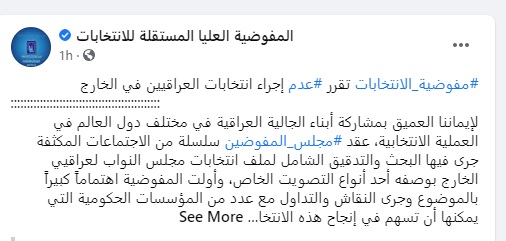 وقالت المفوضية -وهي هيئة رسمية خاضعة لرقابة البرلمان- في بيان: ”واجهنا عدة معوقات فنية ومالية وقانونية وصحية، أهمها أن إكمال عملية تسجيل الناخبين العراقيين في الخارج، بجميع مراحلها، يحتاج إلى 160 يوما تقريبا في الظروف المثالية، بينما المدة المتبقية هي 40 يوما فقط“.