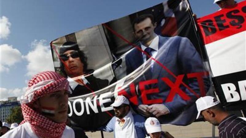 وقال شاهد ان متظاهرين في بلدة معرة النعمان بمحافظة ادلب في شمال غرب سوريا رددوا هتافات قالوا فيها ان القذافي قتل وان دور الاسد قد حان الان.