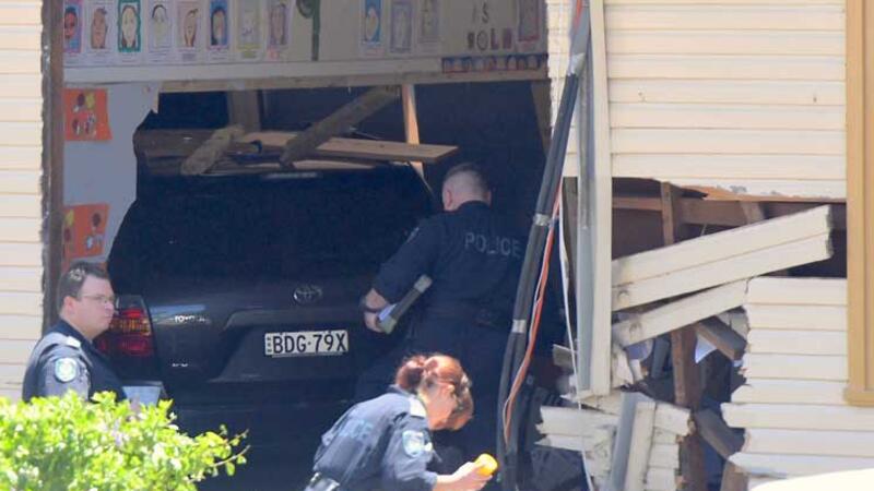 وكانت امرأة (52 عاما) اصطدمت بسيارة كانت تقودها بمبنى مدرسة بانكسيا رود الابتدائية في جريناكير بجنوب غربي سيدني الساعة 09:45 صباحا بالتوقيت المحلي (10:45 من مساء الاثنين بتوقيت غرينتش)، دون أن تصاب.