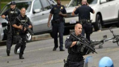 ونقل الضابطان المصابان إلى المستشفى وهما في حالة مستقرة.