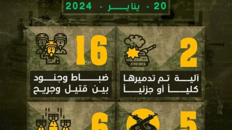 وأفادت الكتائب، الذراع العسكري لحركة المقاومة الإسلامية حماس، أنها دمّرت بشكل جزئي أو كلي عدة آليات عسكرية تابعة لجيش الاحتلال كما أوقعت أمس السبت 16 ضابطاً وجندياً إسرائيلياً بين قتيل وجريح.