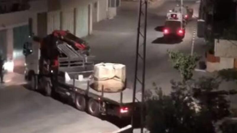 وعلى أحد الحسابات التابعة لها، نشرت منظمة التحرير الفلسطينية تسجيلين التقطا فجر الإثنين يظهران شاحنة تسير ببطء محمّلة حجراً كبيراً وجنوداً يؤمّنون الطريق.