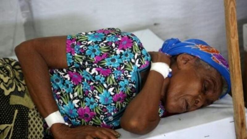 إمرأة تعالج من الكوليرا في مدينة الحديدة اليمنية