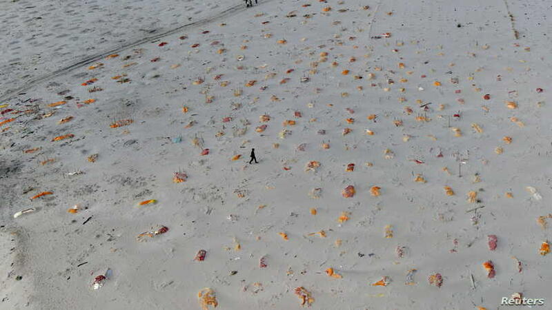 وأضاف الموقع أنه على مدى الأيام الأخيرة تم العثور على جثث لأشخاص يُعتقد بأنهم فارقوا الحياة جراء إصابتهم بكورونا إما طافية في النهر أو مدفونة في الرمال على ضفافه.