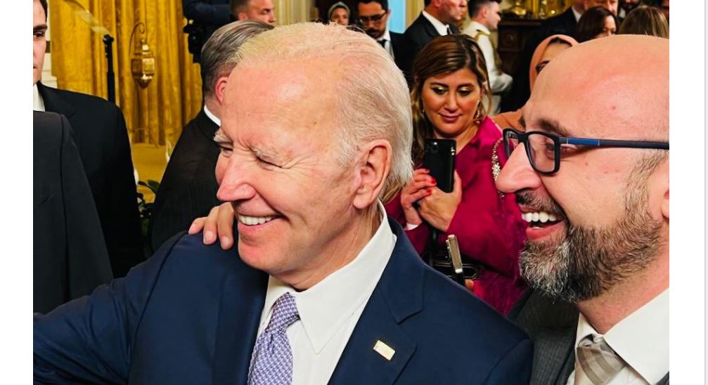 حركة نادرة اقدم عليها الرئيس الاميركي جو بايدن خلال استقباله لوفد من المواطنين الذين لهم اصول اسلامية في البيت الابيض بمناسبة عيد الفطر حيث التقطت صورة سيلفي مع طبيب اردني مقيم في الولايات المتحدة الاميركية