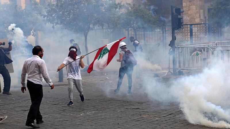 أطلقت قوات الأمن اللبنانية الغاز المسيل للدموع على متظاهرين يحاولون عبور حاجز للوصول إلى مبنى البرلمان في وسط بيروت، وذلك في استمرار للاحتجاجات الغاضبة على خلفية الانفجار الذي ارتفعت حصيلة ضحاياه السبت الى 158 قتيلا.