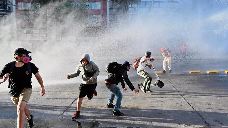ولساعات في ساحة إيطاليا، مركز الاحتجاج منذ أكثر من عام، رشق متظاهرون الشرطة بالحجارة. وردت قوات الأمن باستخدام الغاز المسيل للدموع وخراطيم مياه تحوي مادة كيميائية، حسبما ذكر صحافي في وكالة فرانس برس.