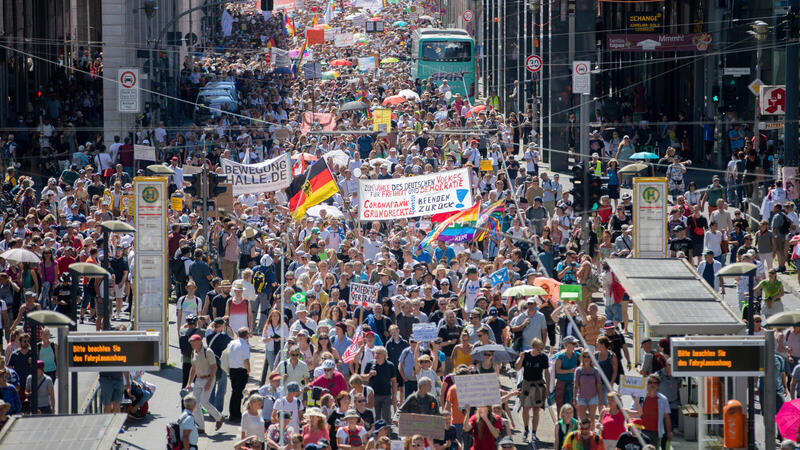 وهتف الحشد الذي ضم خليطا من اليمينيين واليساريين والمؤمنين بنظريات المؤامرة "نحن الموجة الثانية"، بينما تجمّعوا عند بوابة براندنبورغ داعين إلى "المقاومة" وواصفين الوباء بأنه "أكبر نظرية مؤامرة".
