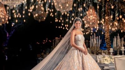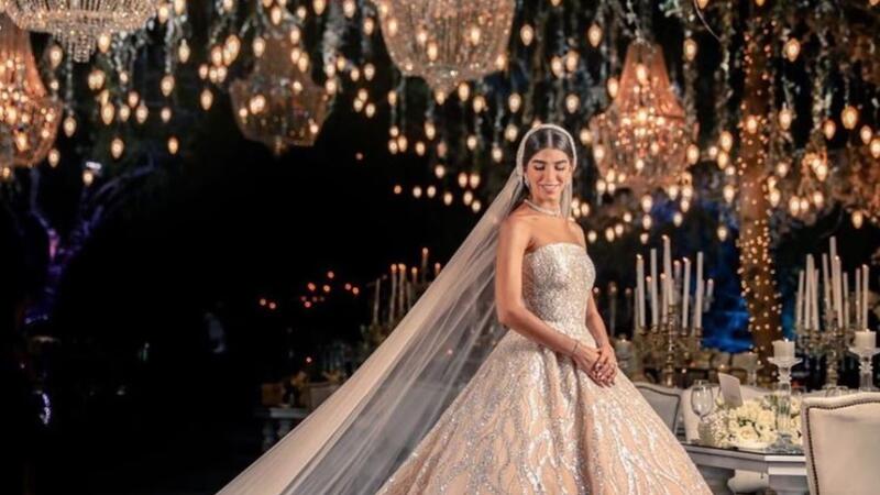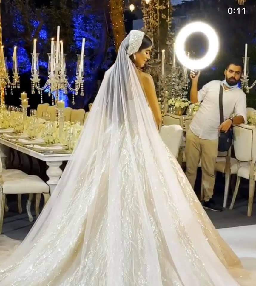 كما ظهرت العروس بفستان زفاف باهر قدر الناشطون ثمنه بآلاف الدولارات، صممته ماريان بشارة.