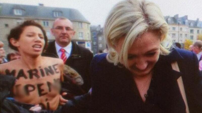 ناشطات "فيمن" يهاجمن تجمعا لمرشحة اليمين المتطرف مارين لوبان