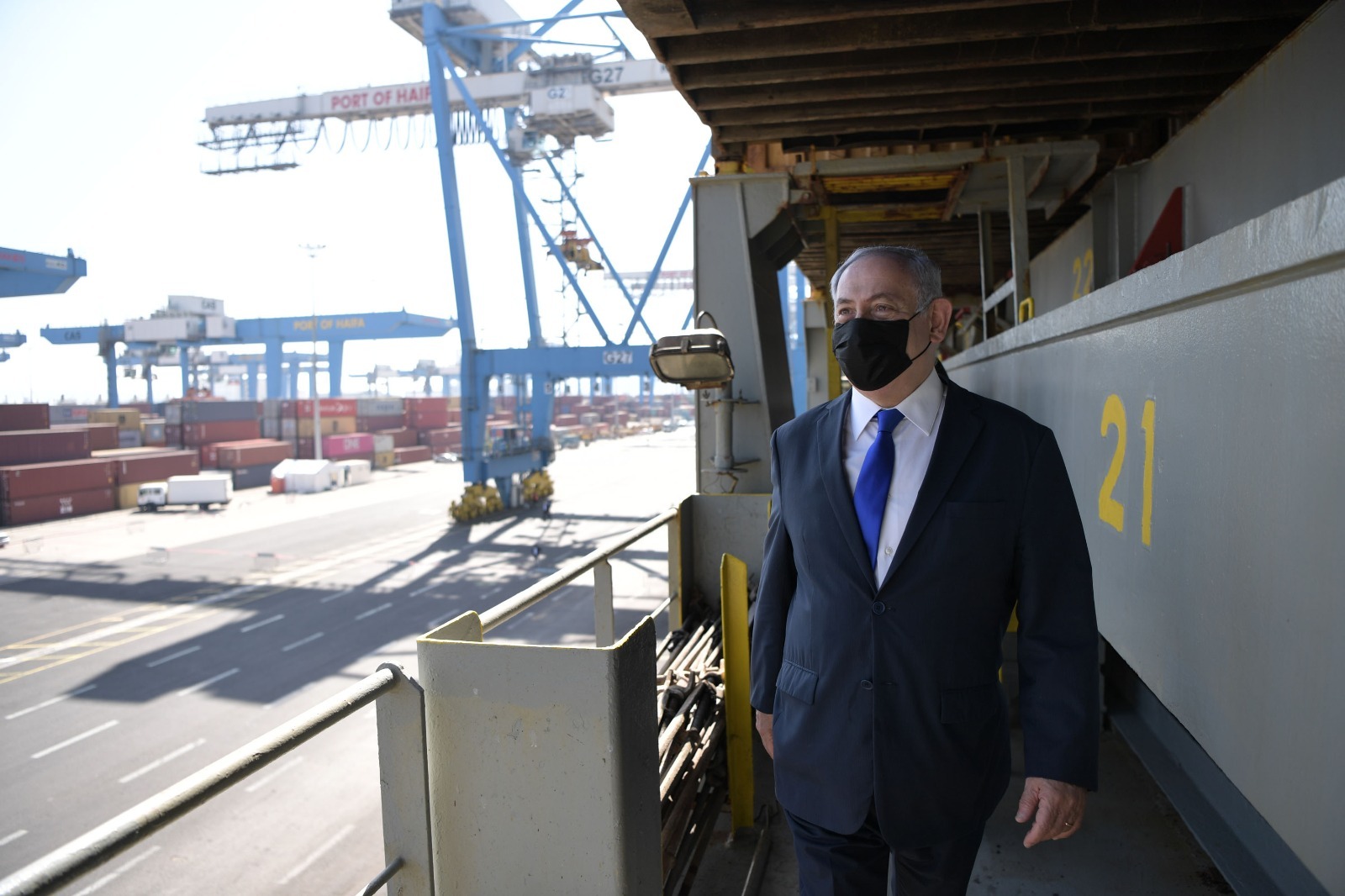 زار رئيس الوزراء الإسرائيلي، بنيامين نتنياهو، اليوم الإثنين، ميناء حيفا، وتفقد الرصيفK حيث ترسو سفينة الشحن الإماراتية الثانية، التي وصلت إلى إسرائيل قادمة من دبي