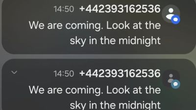 تلقى عدد كبير من الإسرائيليين، عصر السبت، رسائل نصية قصيرة تحمل تهديدًا، مصدرها ظاهريًا رقم بريطاني، تضمنت عبارة باللغة الإنجليزية: