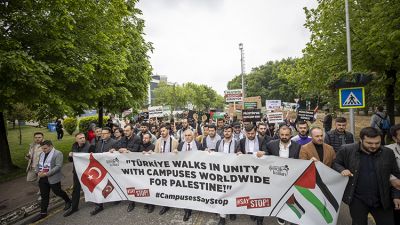 نظم مئات الطلبة في 17 جامعة تركية الخميس مسيرات متزامنة دعماً لغزة، على غرار ما يحدث بالجامعات الأمريكية والأوروبية.