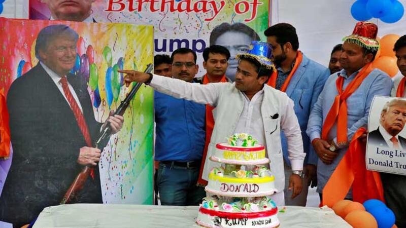وقد قامت مجموعة من 20 شخصا بجماعة “هندو سينا” أو المحاربون، بتقطيع كعكة وهم يغنون “عيد ميلاد سعيد لترامب” وذلك في خيمة مزينة بالبالونات ولافتات تحمل صور ترامب، من بينها صورة تظهره وهو يحمل سلاح.