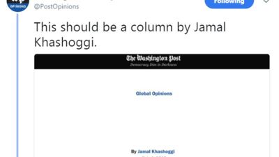 وعلقت الصحيفة في تغريدة على "تويتر": "هذا العمود كان من المفترض أن يكون مكتوبا من قبل جمال".