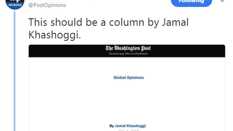نشرت صحيفة "واشنطن بوست" مقالا فارغا في العمود الأسبوعي، الذي من المفترض أن ينشر فيه الكاتب السعودي المختفي جمال خاشقجي.