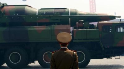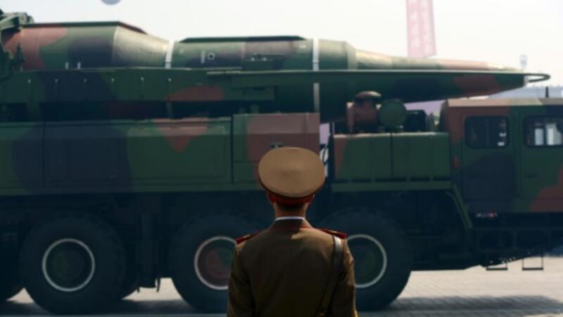 شاحنة تحمل صاروخا خلال عرض عسكري في بيونيغيانغ