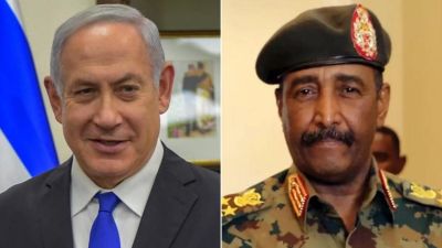 رئيس المجلس السيادي السوداني عبد الفتاح البرهان (يمين) ورئيس الوزراء الاسرائيلي بنيامين نتنياهو