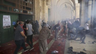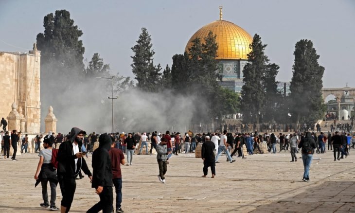 ومع ساعات صباح الإثنين، اقتحمت قوات الاحتلال الإسرائيلي باحات المسجد الأقصى، واعتدت على المصلين الفلسطينيين بالرصاص المطاطي وقنابل الصوت والغاز المسيل للدموع.