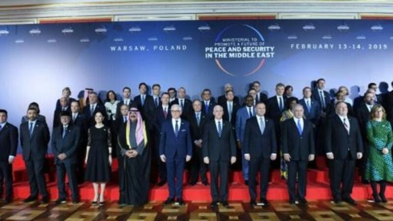 صورة جماعية للمشاركين في مؤتمر وارسو للأمن والسلام في الشرق الأوسط