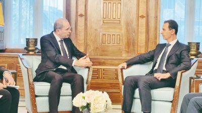 وزير الخارجية وشؤون المغتربين أيمن الصفدي إلى الجمهورية السورية ثان زيارة له إلى هذا البلد منذ شباط الماضي، وعقب شهرين على اجتماع عمّان الذي مهّد لعودة سورية إلى الجامعة العربية في قمّة جدّة بالمملكة العربية السعودية.