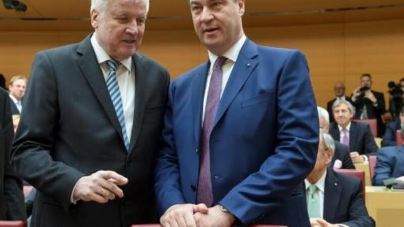 وزير الداخلية الالماني هورست سيهوفر (يسار) مع خلفه على رأس حكومة بافاريا ماركوس سدر في برلمان المقاطعة في ميونيخ