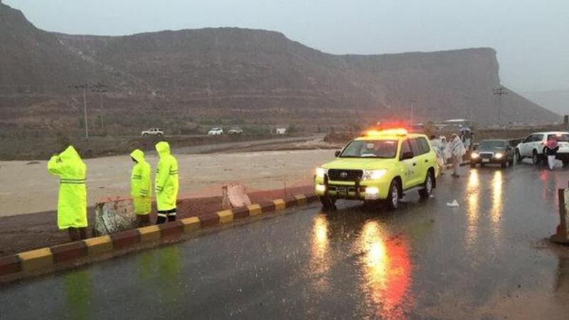 وقال الدفاع المدني السعودي في بيان له، إن سبعة أشخاص لقوا حتفهم، فيما أصيب 11 آخرون، واحتجز أربعة أشخاص، ومركبة بسبب ارتفاع منسوب المياه.