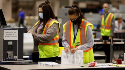 وحتى الآن تظهر نتائج الفرز الجزئي للأصوات في كل من بنسلفانيا وجورجيا وكارولينا وويسكونسن تقدم ترامب على منافسه الديمقراطي جو بايدن.