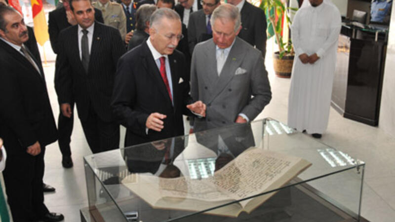 ولدى وصول الأمير تشارلز إلى في مقر المنظمة، قدم إحسان أوغلى له شرحا حول نسخة مصحف عثمان(أول مصحف كامل ينسب إلى الخليفة الثالث عثمان بن عفان)، موضوعة في مدخل المنظمة. وأوضح الأمين العام للأمير إن المصحف الذي جمع قبل 14 قرنا، لا توجد أية فروقات بينه وبين أي مصحف موجود في الوقت الحالي.