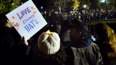 وردد المتظاهرون هتافات من بينها "ليس رئيسي" و "الحب يغلب الكراهية" يوم السبت في نيويورك ولوس أنجليس وشيكاغو وغيرها معتبرين أن ترامب يهدد حقوقهم المدنية والإنسانية.