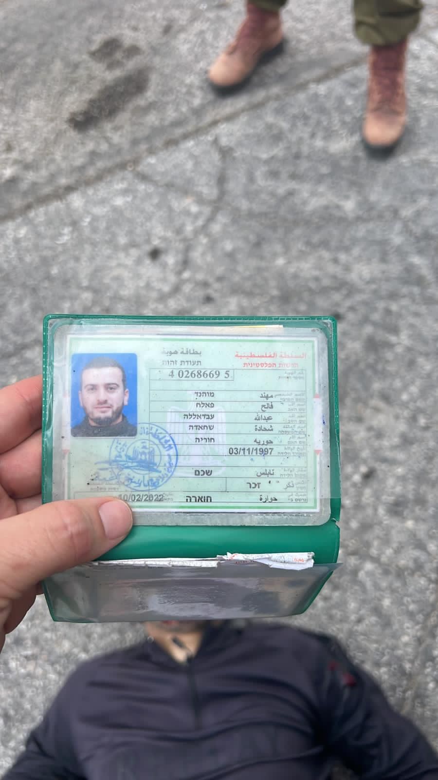 ووصل البوابة صورة لهوية المنفذ لاأسير المحرر مهند شحادة من بلدة عوريف / نابلس 25 عاما الذي ارتقى في اشتباك مع قوات الاحتلال وقالت مصادر اسرائيلية ان هناك امثر من مسلح هاجمو المستوطنين وقالت مصادر عبرية ان الشهيد ينتمي لحركة حماس ، وقد داهمت قوات الاحتلال على الفور منزله في بلده عوريف في نابلس