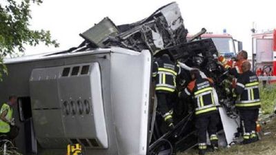 وأظهرت لقطات تلفزيونية من موقع الحادث حافلة صفراء استقرت على أحد جانبيها وتحيط بها سيارات الإسعاف وجثث قريبة منها.