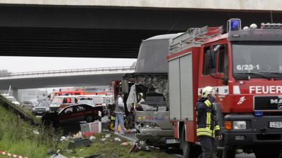 وذكرت إيرين براندشتين، المتحدثة باسم الشرطة، أن الحافلة المنكوبة كانت تقل 46 شخصا علاوة على سائقين اثنين فيما أفادت وكالة الأنباء الألمانية بأن موقع الحادث لا يزال مغلقا وتتواصل عملية نقل المتضررين إلى مستشفيات على متن مروحيات وسيارات إسعاف.