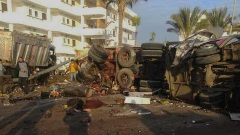 قتل 21 شخصا السبت، معظمهم عمال مصنع اضافة الى سواح اجانب، اثر تصادم حافلتين سياحيتين وشاحنة نقل على طريق العين السخنة بمحافظة السويس في مصر.
