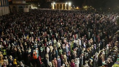 ومنذ نهار الأربهاء توافد عشرات الآلاف من المصلين إلى مدينة القدس المحتلة قادمين من كافة محافظات الضفة الغربية والبلدات العربية في مناطق الـ48، لإحياء ليلة السابع والعشرين من رمضان في المسجد الأقصى.