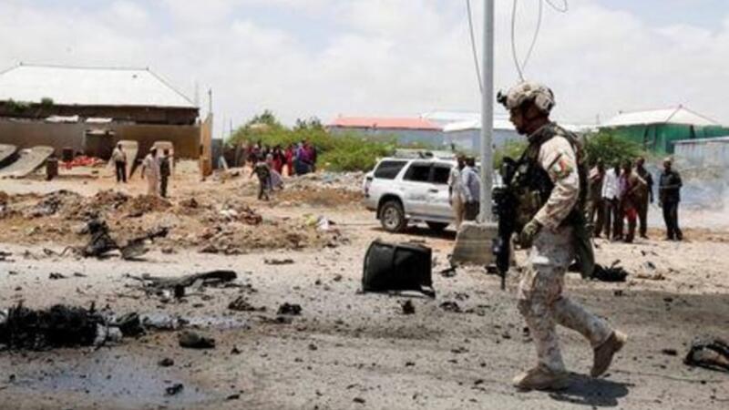 جندي في موقع انفجار سيارة ملغومة استهدف موكبا للاتحاد الأوروبي في الصومال