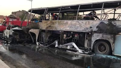 ورجحت ان يرتفع عدد الضحايا حيث اصيب نحو 15 بجروح وحروق بليغة فيما تتواصل عملية إخراج ضحايا قضوا داخل الحافلة.