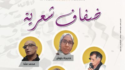 تحت إشراف وزارة الثقافة والاتصال، تنظم دار الشعر بمراكش، بتنسيق مع المديرية الجهوية لوزارة الثقافة والاتصال، قطاع الثقافة، بجهة كلميم واد نون، لقاء شعريا موسوما ب"ضفاف شعرية"، وذلك يوم الجمعة 26 يوليوز 2019 على الساعة الثامنة ليلا، في فضاء مشبع بالشعر هو حديقة التواغيل، ببوابة الصحراء واد نون، كليميم.