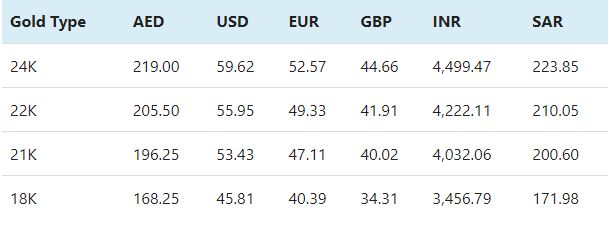 • سجل سعر الجرام عيار 24 نحو 219  درهم إماراتي