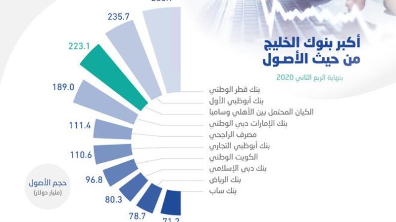 وخلف البنك المحتمل، سيأتي بنك الإمارات دبي الوطني بـ189 مليار دولار، وخامسا مصرف الراجحي بـ111.4 مليار دولار.