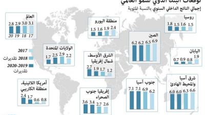 من جهة أخرى، توقع البنك الدولي أن يتباطأ النمو العالمي إلى 2.9 في المائة في 2019 مقارنة بـ 3 في المائة في 2018، مرجعا ذلك إلى تصاعد التوتر التجاري وضعف حركة التجارة العالمية.