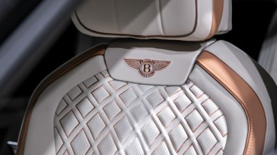 وتأتي داخلية السيارة بمقاعد مكسوة من الجلد بتطريز على شكل الماس، وتضم العديد من وسائل الراحة كالطاولات الكهربائية لركاب الصف الثاني.