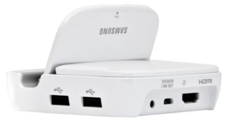 كما تتضمن قاعدة الإرساء الجديدة منفذ خاص بتقنية HDMI كامل لبث محتوى الوسائط المتعددة على شاشات التلفاز العالية التحديد أو أجهزة العرض بدقة وضوح تبلغ 1080 بيكسل، ومنفذ مايكرو يو إس بي لإمكانية شحن الجهاز، ومقبس خاص بسماعة رأس جاك قياس 3.5 مم.
