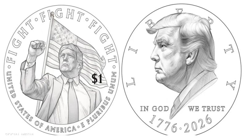 حيث تظهر التصاميم الأولية التي نشرها أمين الخزانة براندون بيتش على منصة إكس، الوجه الأول للعملة بصورته، بينما يظهر الوجه الثاني لترامب رافعا قبضته أمام العلم الأميركي مع عبارة "حارب حارب حارب"، مستوحاة من محاولته اغتيال العام الماضي.