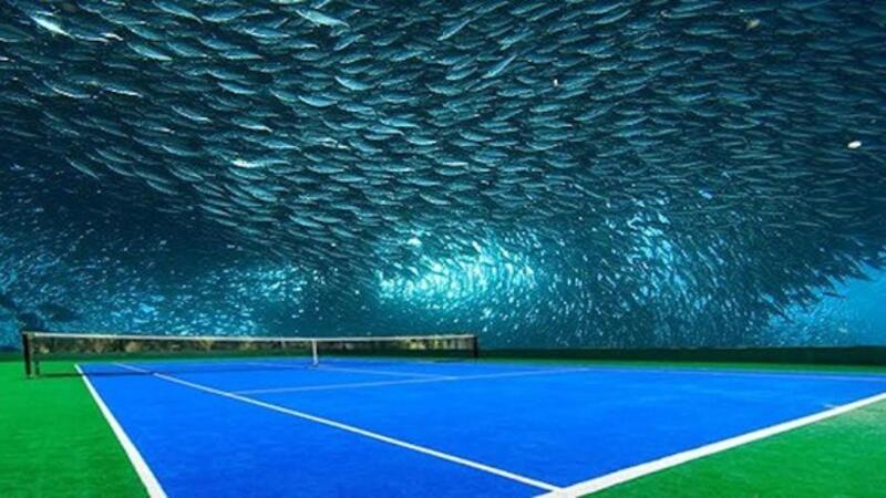 ويضم الملعب المقترح 7 ساحات لممارسة رياضة التنس تحت الماء، وسط أجواء بحرية وشعاب مرجانية وأسماك متنوعة، تشبه عالماً خيالياً، حيث جذبت الفكرة انتباه جماهير رياضة كرة التنس، لكنها زادت المخاوف الفنية بين المهندسين والمعماريين.