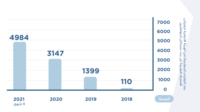 رد مبالغ 9640 طلباً للمواطنين لاسترداد ضريبة القيمة المضافة عن بناء مساكنهم بنمو 107.1 % خلال العام الحالي