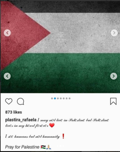 وأعلنت "رافائيلا" بأن قرار انسحابها من المسابقة التي تعتبر حلمًا حقيقيًا لملكات الجمال حول العالم تعبيرًا عن تضامنها مع فلسطين المحتلة.