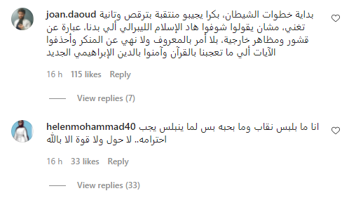 ورغم الإشادة بأداء الفتاة، إلا أن موقع التدوين "تويتر" شهد انقسامًا بالآراء حولها إذ اعتبر بعض المعلقين بأن رؤية فتاة منقبة تعزف على آلة موسيقية يعد مشهدًا جديدًا لم يألفه الشارع السعودي سابقًا.